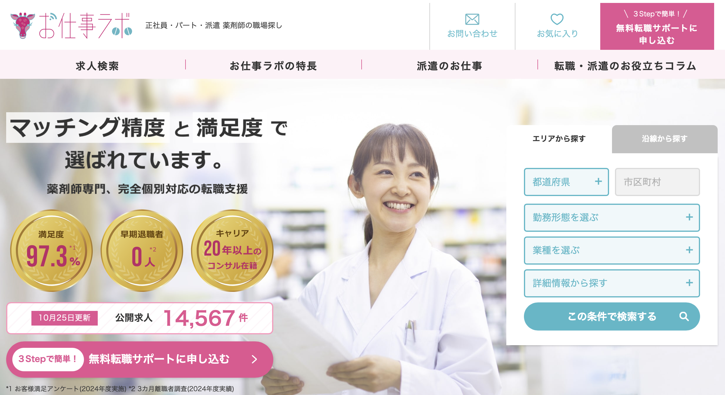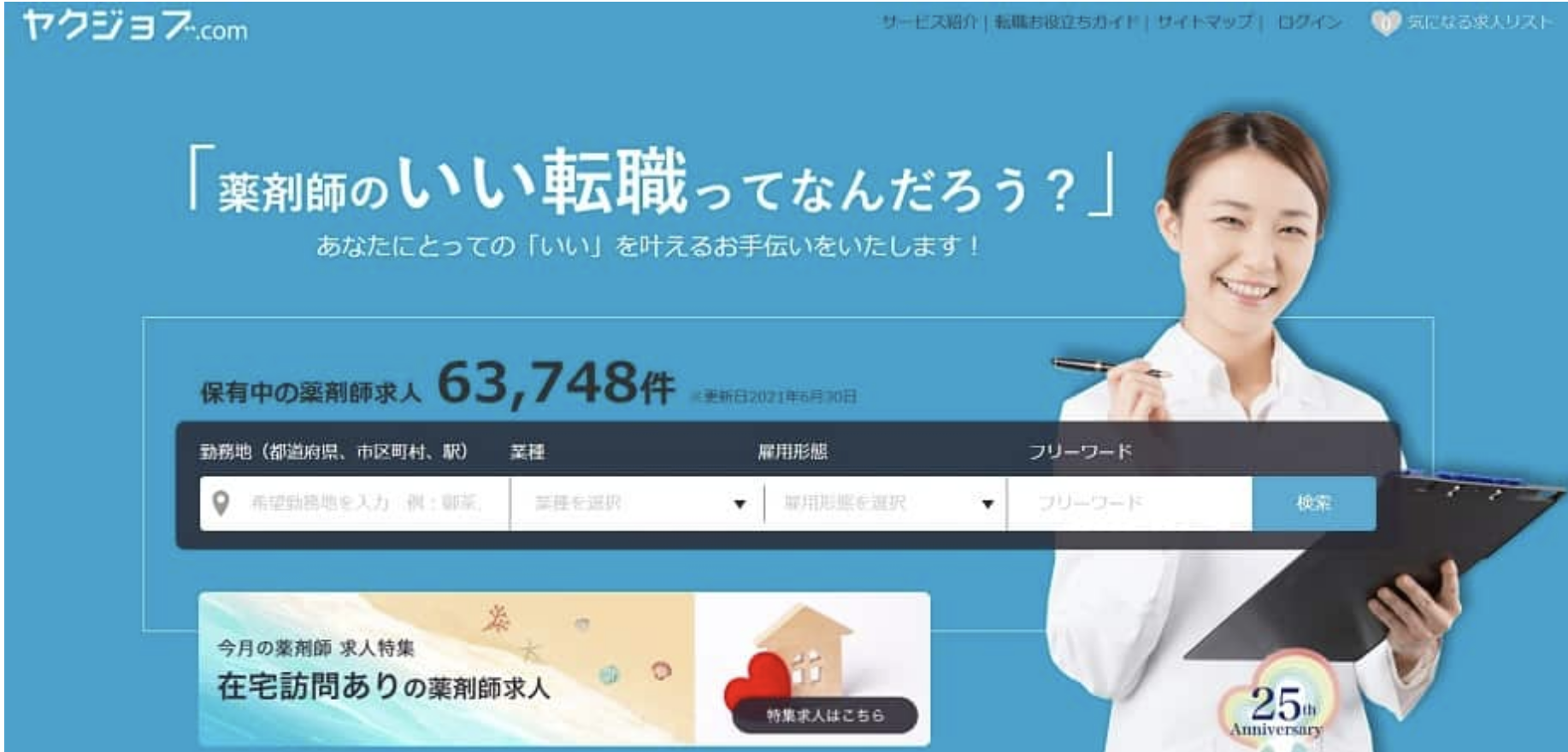 ヤクジョは、薬剤師の転職・派遣専門の人材紹介サービスです。